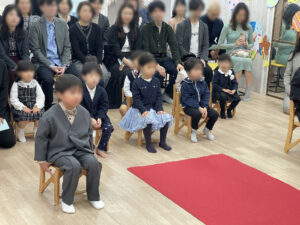 式が始まる前、園内には少し緊張した空気が漂いながらも、